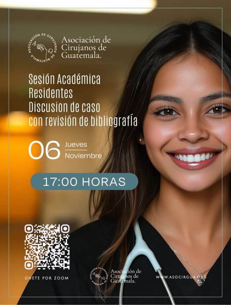 Asista el 06 de noviembre a la Sesión Académica de Residentes donde habrá discución de caso con revisión bibliográfica.